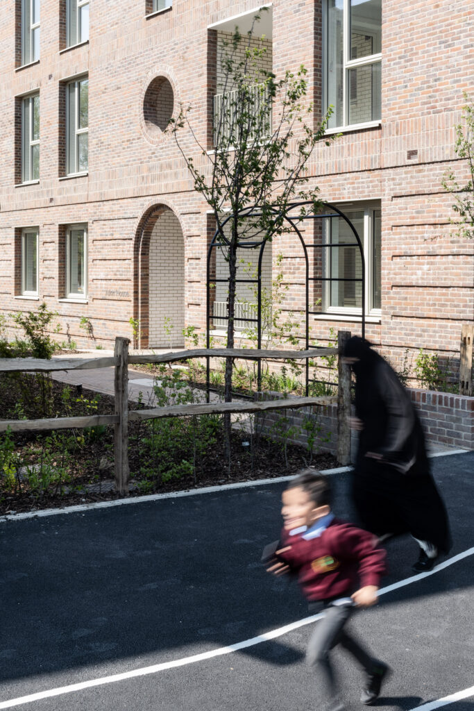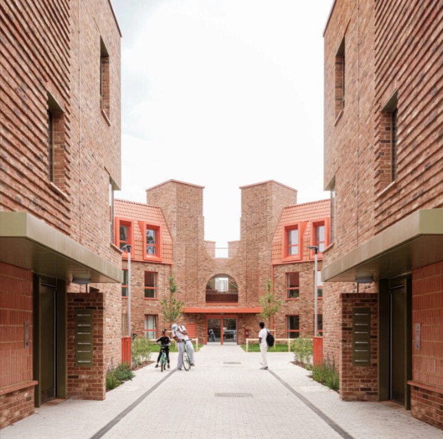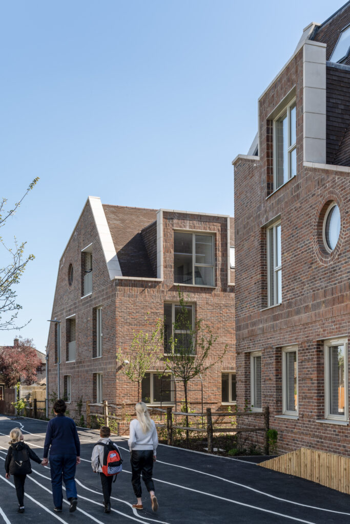 Archio, chosen by residents via a public workshop, led an award-winning co-design process. The stepped building overlooks a co-created public courtyard, fostering interaction. Staggered balconies and wide walkways promote community cohesion and children’s play, demonstrating a deep commitment to resident wellbeing.