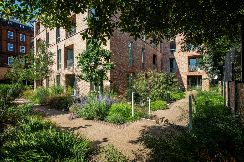Belle Vue, Camden for Pegasus Homes with Morris+Company, Architecture PLB Tibbalds, RISE, ISG, Elliott Wood and Max Fordham. Belle Vue is a holistic retirement community in Hampstead. Four interconnected buildings create a sequence of landscaped courtyards, gardens and terraces, with communal and neighbourhood facilities, including a public café open to all.