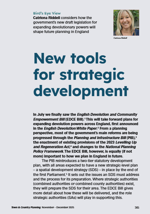The TCPA’s journal, Town & Country Planning, is published six times a year (hard copies and digital) and covers a wide range of topics concerning people and the built environment. Contributors include practitioners, academics, community representatives and others interested in how the homes, neighbourhoods and places in which we live could be changed and developed to improve people’s lives.