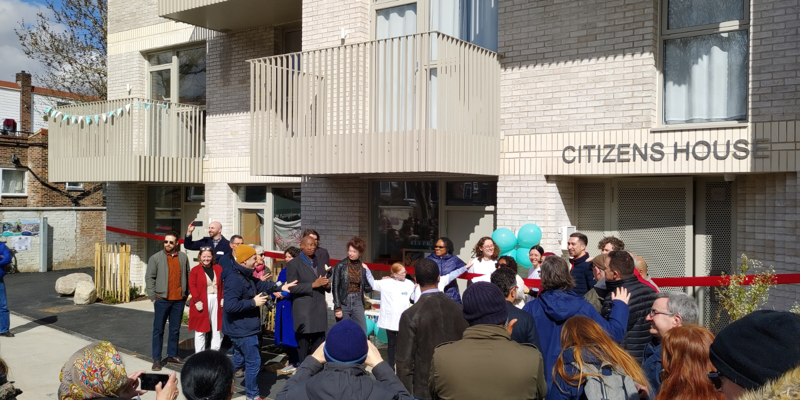 Header image: Residents and neighbours celebrating the opening of Citizens House in Lewisham. It is the first community land trust in London that has been directly created by the community.